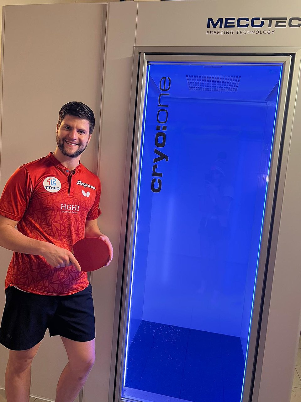 Interrogé sur le contexte, comment il a découvert et évalué les avantages de l'utilisation d'une chambre froide, Dimitrij Ovtcharov déclare: « Mon ancien club Fakel Orenburg accordait une grande importance à la thérapie par le froid du corps entier il y a plus de dix ans. J'ai rapidement remarqué que la régénération et le bien-être s'amélioraient grandement après l'entraînement, et parce que je veux jouer avec succès pendant de nombreuses années à venir, il est maintenant d'autant plus important de ne pas se blesser. Le cryo:one va beaucoup m'aider avec ça. J'utilise la chambre immédiatement après chaque séance d'entraînement. Il est réglé pour que j'entre dans la chambre deux fois par jour pendant cinq minutes à moins 85 degrés Celsius.